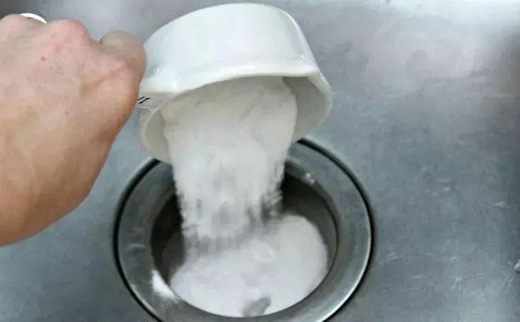 將小蘇打粉倒入下水道排水孔周圍。